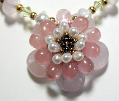 strawberry quartz and the top is pearl. The pattern for the Lotus Flower describes how to make