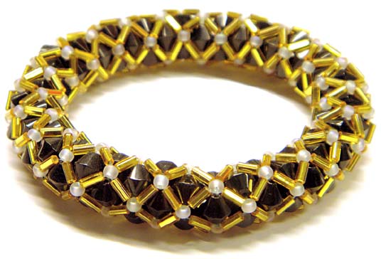 by Lori McDermott(Woonsocket, RI) Lori altered our crystal bangle design to make this stunning bracelet using bugle beads. Free instructions for the Crystal Bangle. |