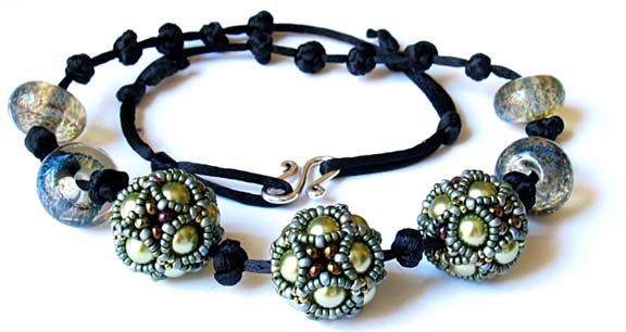 Cluster beaded beads and four borosilicate glass beads. These