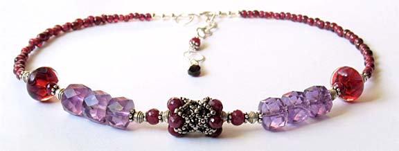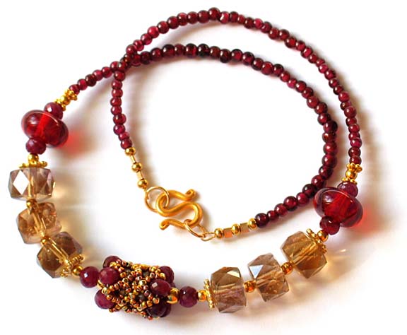 necklaces each include 16 rubies (5 mm), two hand made borosilicate
